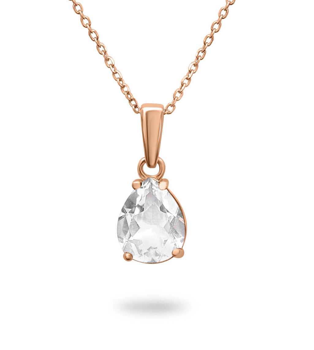 Está hecho a mano, creada en plata .925 (ideal para pieles sensibles con reacciones alérgicas) bañado en oro rosa o platino de 14K. Su gema es, Topacio Blanco natural.