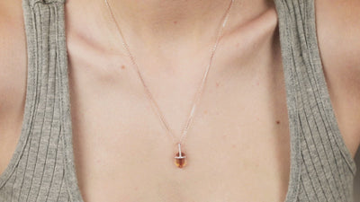 Está hecho a mano, creada en plata .925 (ideal para pieles sensibles con reacciones alérgicas) bañado en oro rosa o platino de 14K. Su gema es Citrino natural.