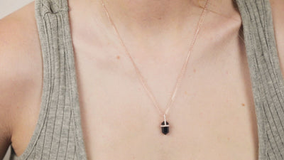 Está hecho a mano, creada en plata .925 (ideal para pieles sensibles con reacciones alérgicas) bañado en oro rosa o platino de 14K. Su gema es Zafiro cultivado.